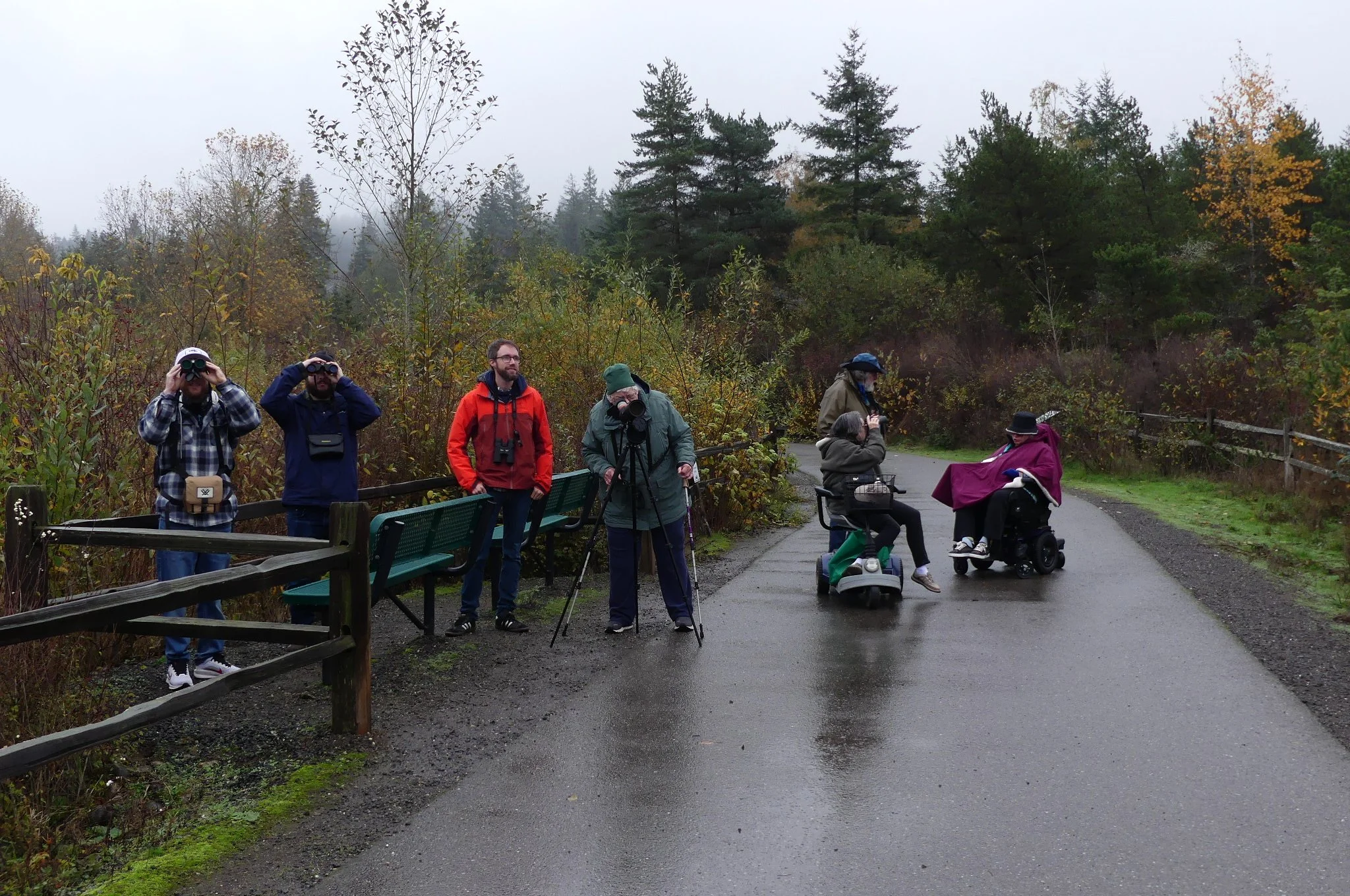 Our recent "Accessible-to-All" field trip was a resounding success! Despite a persistent drizzle, 18 dedicated participants braved the weather to share the joy of bird watching together. It was a wonderful morning of shared sightings, community spirit, and proof that a little rain can't dampen the passion for nature. The enthusiasm and camaraderie among the group were truly inspiring.